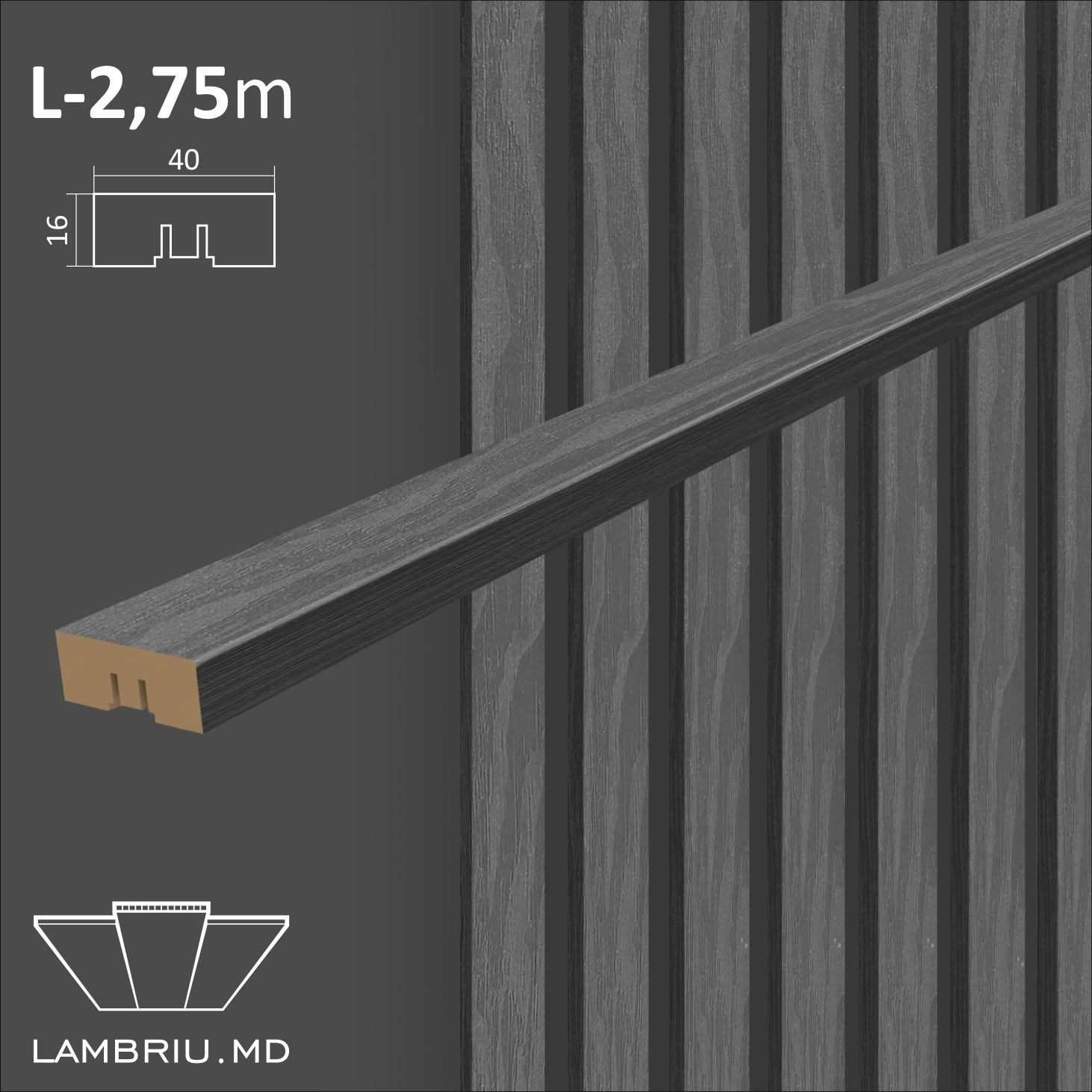Декоративная рейка из МДФ 40*16*2750мм — Дуб Антрацит- комплект 6 шт.